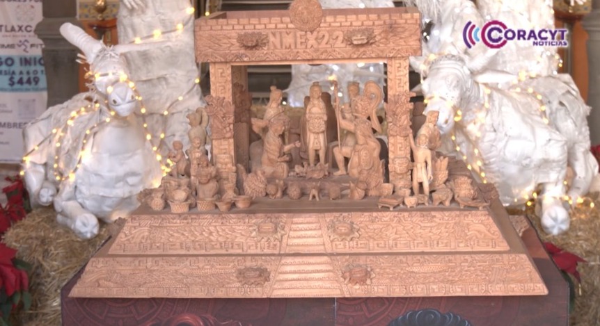 Del 8 de diciembre al 8 de enero, la Secretaría de Turismo exhibe dos nacimientos: uno elaborado con PET por estudiantes de la Universidad del Altiplano y otro tallado en cedro rojo por artesanas de Tizatlán, con más de 200 figuras y elementos prehispánicos.