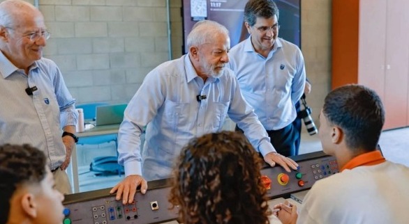 El presidente brasileño Luis Ignacio Lula da Silva en la inauguración de la escuela técnica Roberto Rocca, de la empresa siderúrgica Ternium, en Santa Cruz, Río de Janeiro. (La Jornada)