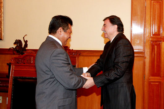 Tlaxcala, Tlax.- El Gobernador Mariano González Zarur sostuvo un encuentro de cortesía con el nuevo representante del Comité Ejecutivo Nacional (CEN) del Sindicato Nacional de Trabajadores de la Educación (Snte) en la sección 31, Carlos Antonio Pérez, a quien refrendó su interés por mantener una relación institucional con este gremio para atender de maneras coordinada las necesidades de los profesores tlaxcaltecas.