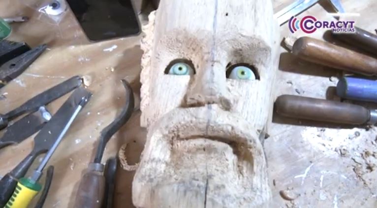 El artesano elabora piezas talladas en colorín como una alternativa sustentable ante las restricciones en el uso de maderas como el cedro.