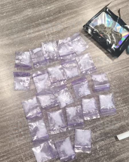 Al llevar a cabo la revisión, se localizaron entre sus pertenencias 23 envoltorios que contenían una sustancia granulada color blanco, con características similares a la droga conocida como cristal, así como un envoltorio con hierba color verde, con características similares a la marihuana. Asimismo, al verificar la información en el sistema Plataforma México, se constató que la motocicleta contaba con reporte de robo.