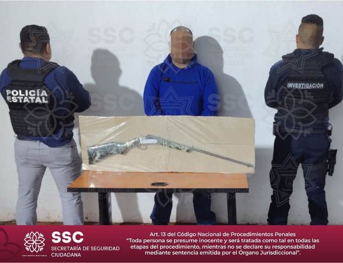 Como resultado de una denuncia ciudadana, elementos de la Secretaría de Seguridad Ciudadana (SSC) detuvieron a Juan Antonio N., por el presunto delito de portación ilegal de arma de fuego en el municipio de Yauhquemehcan.