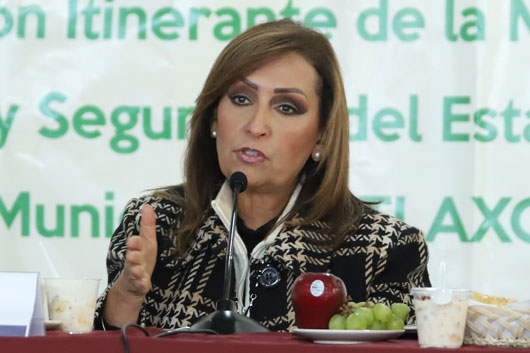La gobernadora Lorena Cuéllar Cisneros encabezó la sexta reunión itinerante de la Mesa de Trabajo para la Construcción de Paz y Seguridad, Región I Apizaco, realizada en el municipio de Tlaxco, donde presentaron un informe de resultados derivados de la implementación de las estrategias conjuntas entre los tres niveles de gobierno.